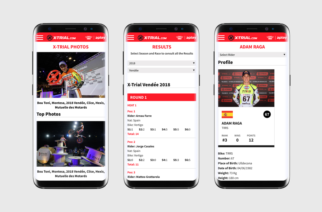 2Play, companyia internacional dedicada a la gestió esportiva (en aquest cas del X-Trial), va sol·licitar el disseny i programació del seu lloc web, amb diferents opcions de personalització en termes de disseny i funcionalitat i amb un gestor de continguts propi, no basat en CMS d'ús lliure ni en un sistema de plantilles de tercers.
