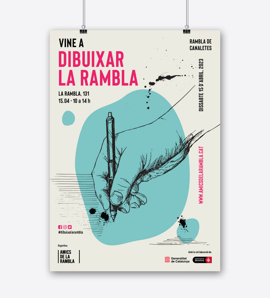 L'element principal del cartell de l'activitat és una mà a punt de dibuixar, creada imitant la tècnica del dibuix al llapis, mentre que la imatge del concurs per a dissenyar l'etiqueta de la cervesa La Rambla, és una ampolla d'aquesta beguda acompanyada per un esbós d'un racó del passeig. La mà està situada en un pla detall, perquè l'espectador senti que està a punt d'agafar un llapis i començar a dibuixar, mentre que en el cas de l'ampolla, la Rambla forma part del mateix envàs, donant compte de la personalitat de la beguda i la seva vinculació amb el passeig.