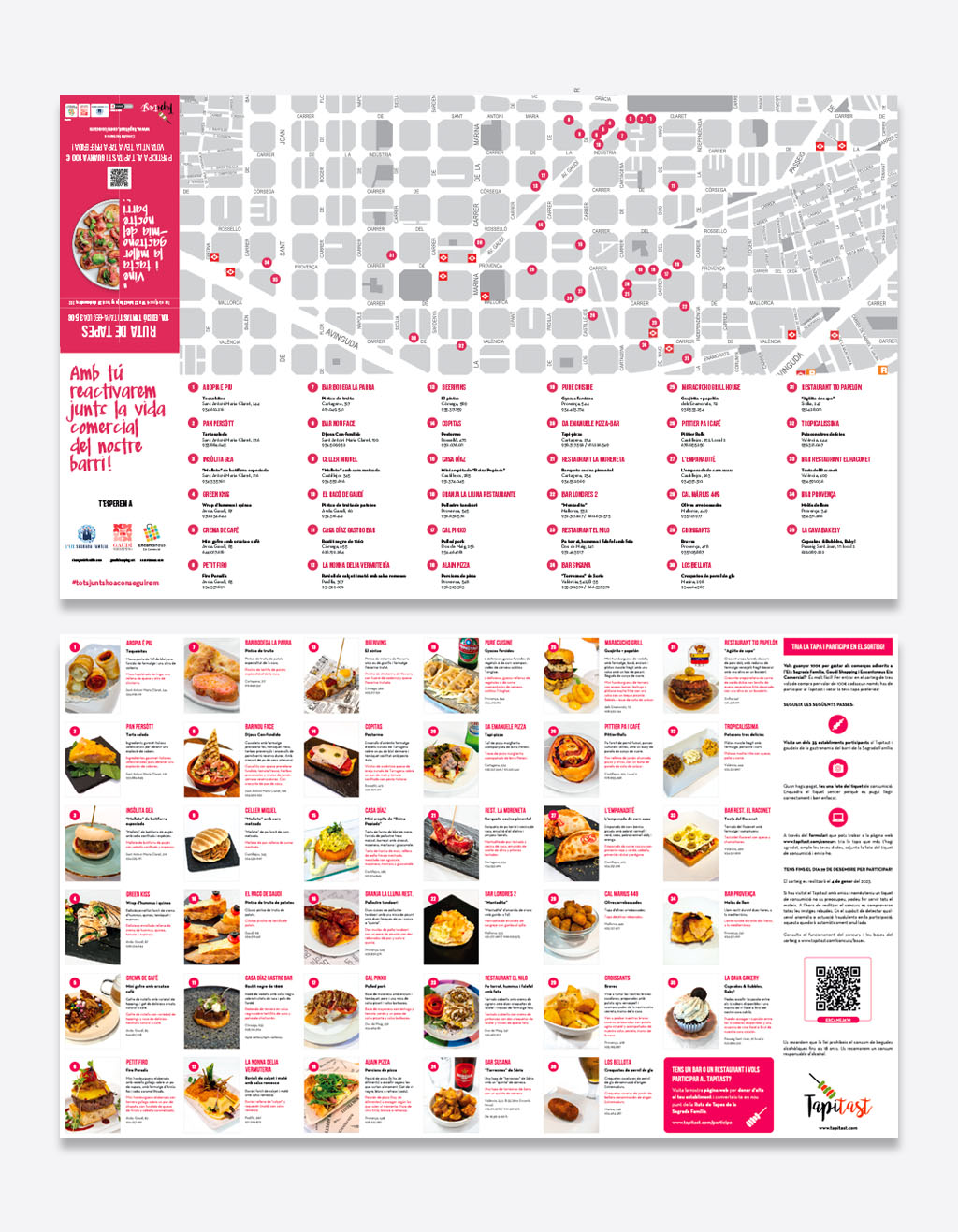 Una edición más, las asociaciones de comerciantes de la Sagrada Família, Gaudí Shopping, Encantsnous Eix Comercial y Eix Sagrada Família nos han encargado el diseño gráfico y desarrollo web para la nueva edición de TapiTast, la Ruta de Tapas que promociona los bares y restaurantes de la zona.