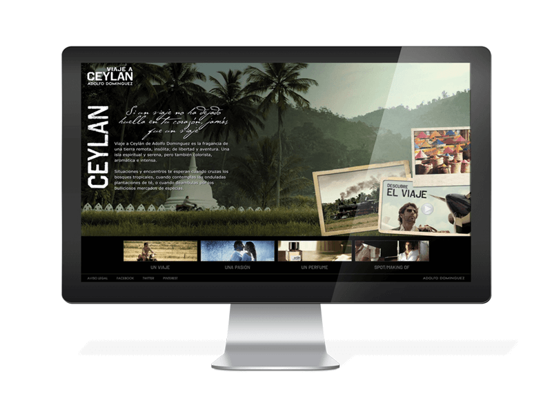Diseño web para el lanzamiento de la fragancia Viaje a Ceylán hombre de Adolfo Domínguez.
